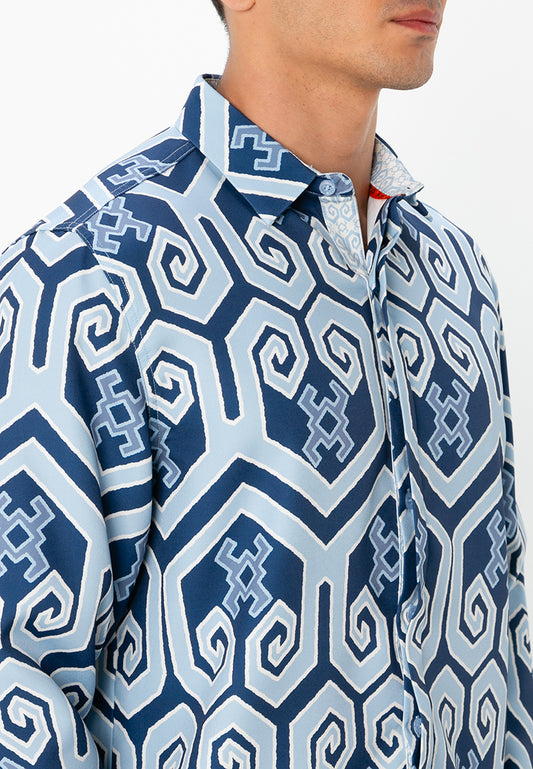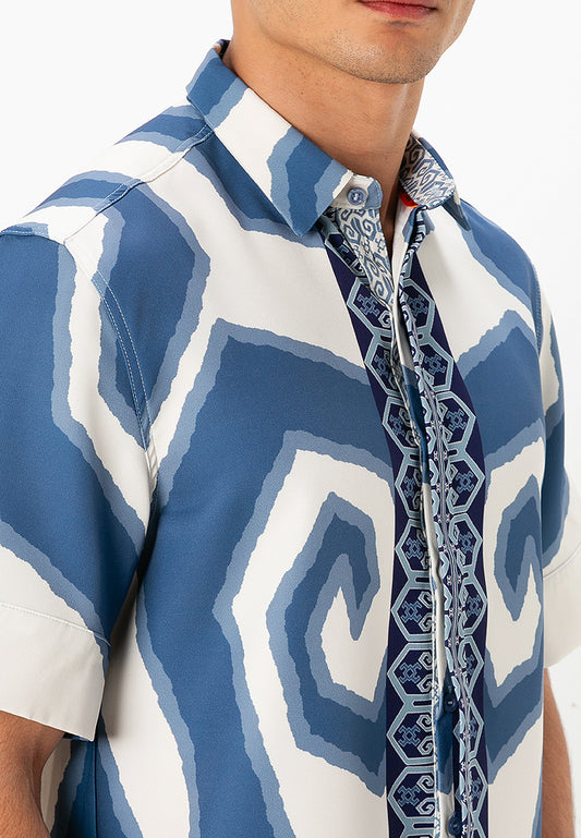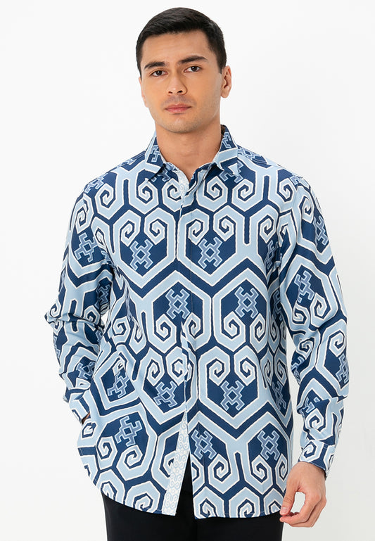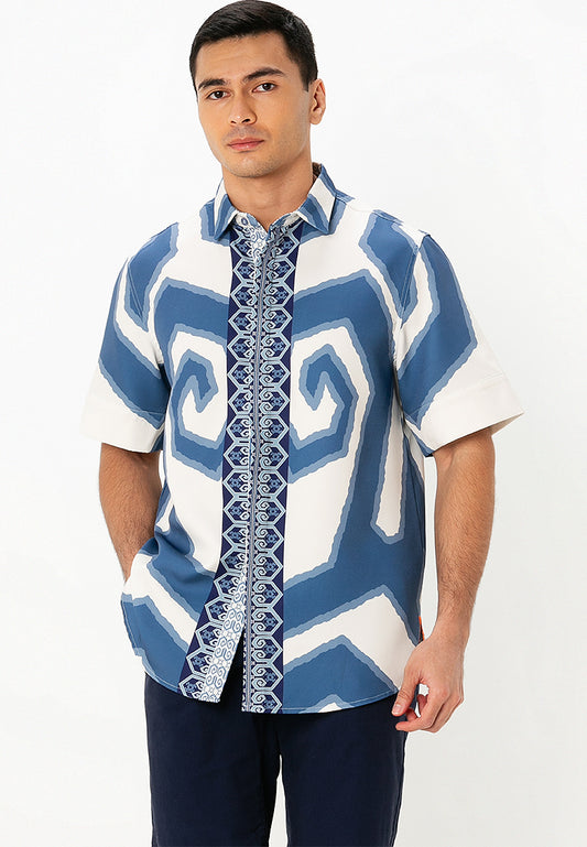 MELA PLEATED KEBAYA SET WITH FRONT PANEL SET - Light Blue/Cream