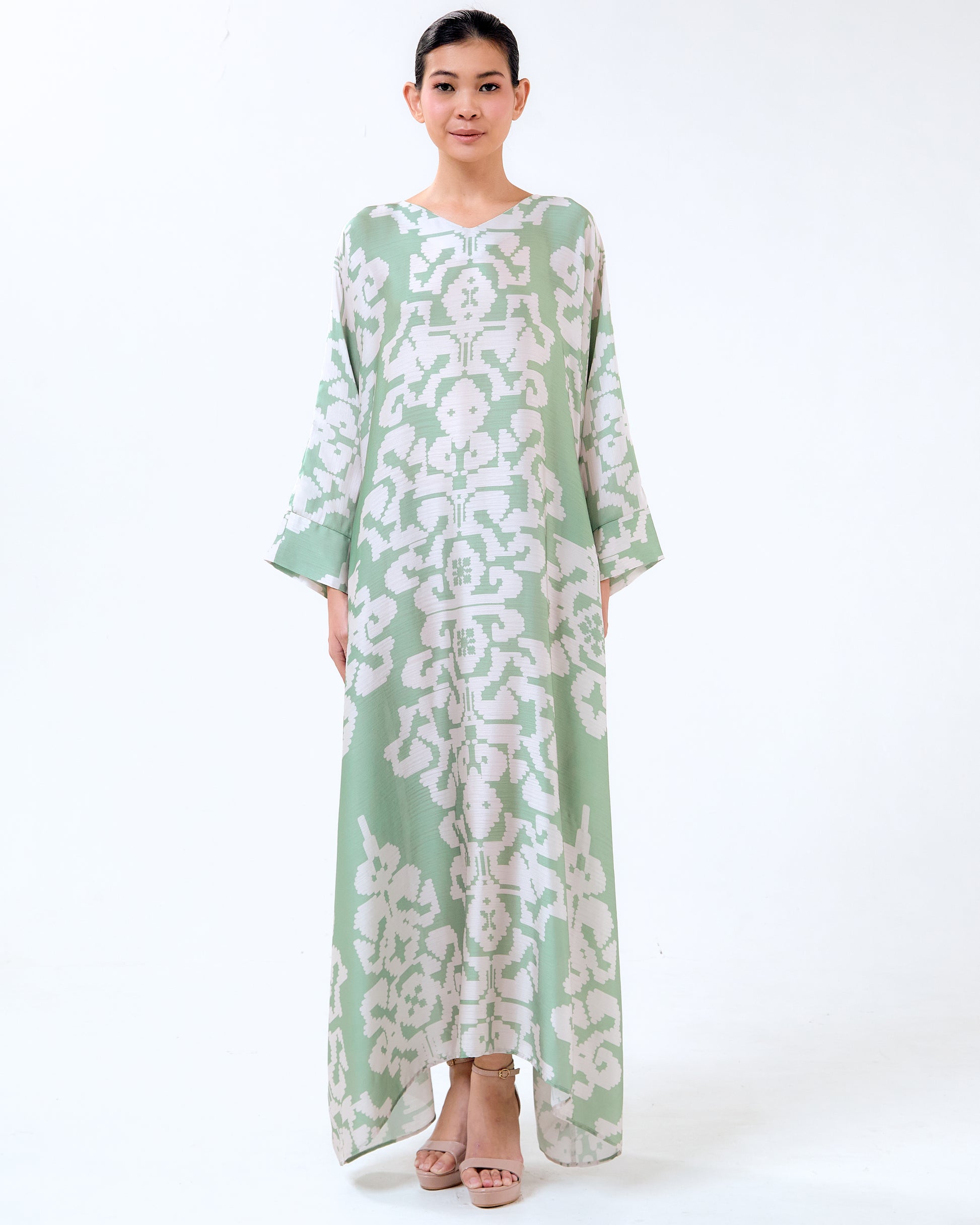 • Signature Tom Abang Saufi Kaftan featuring a traditional Malaysian motif.