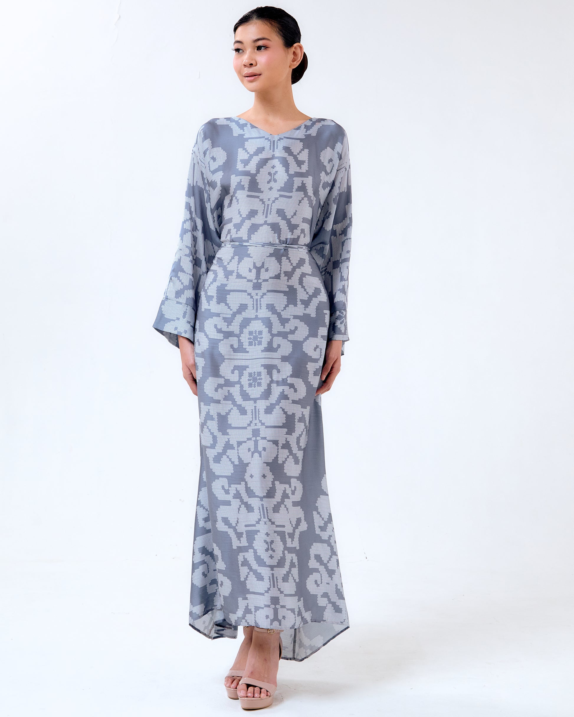 The Bulan Print in Grey reinterprets the classic Bulan motif in subtle dotted layers — calm, balanced, and quietly powerful.