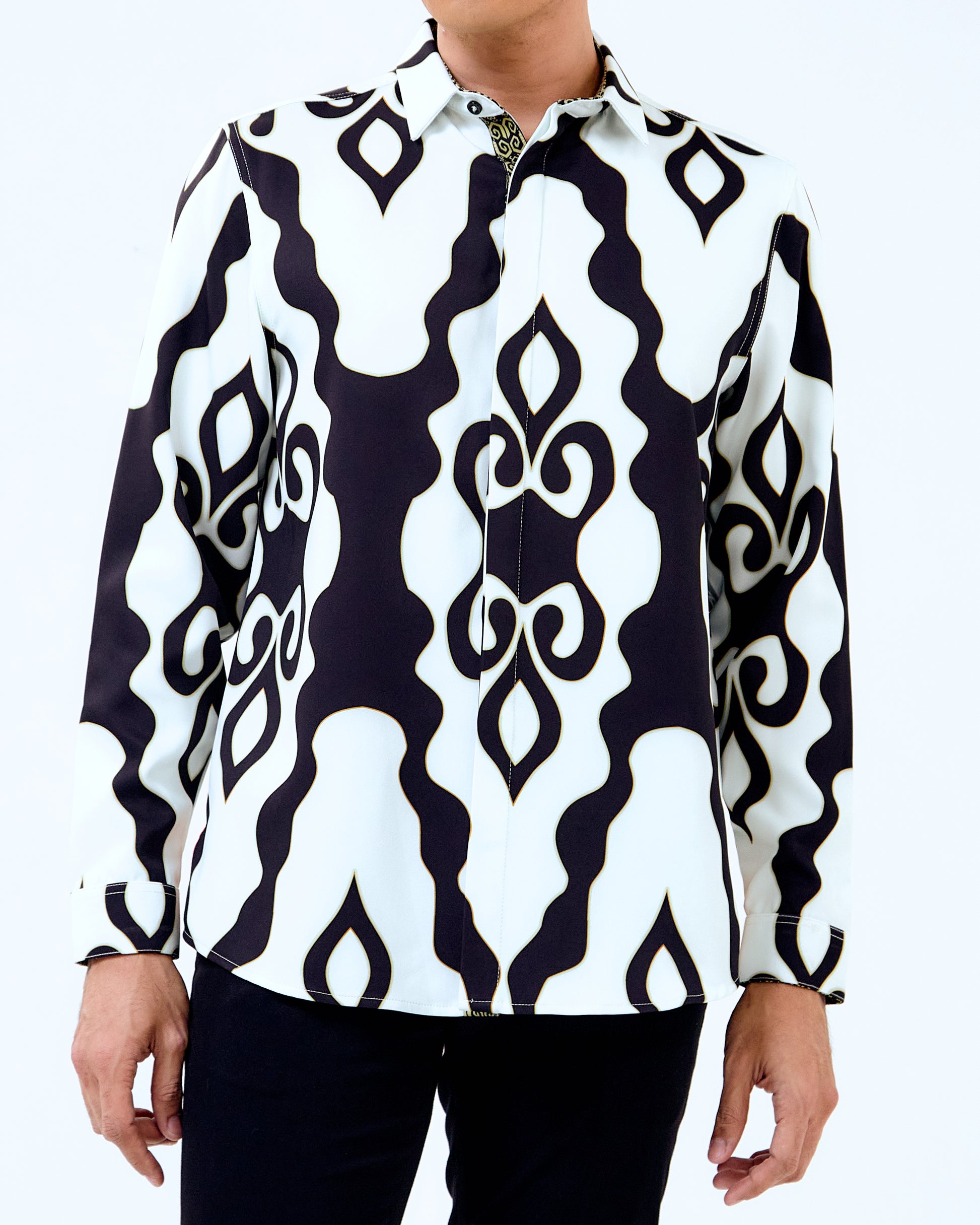 ∙ Printed collared shirt featuring the signature Tom Abang Saufi Mela Print.