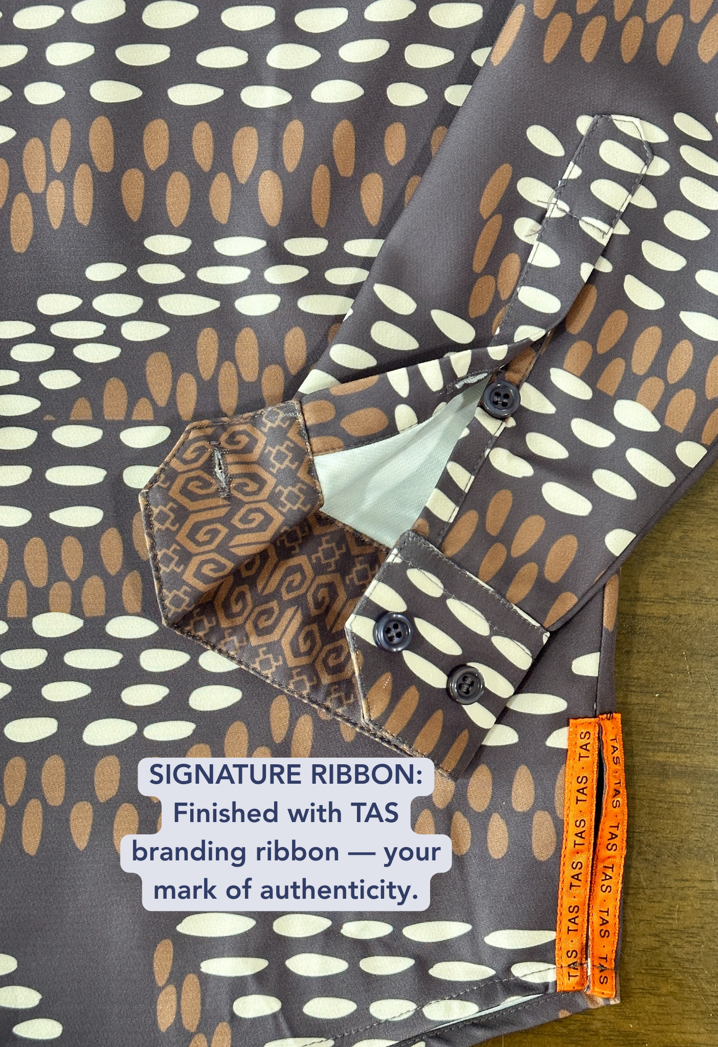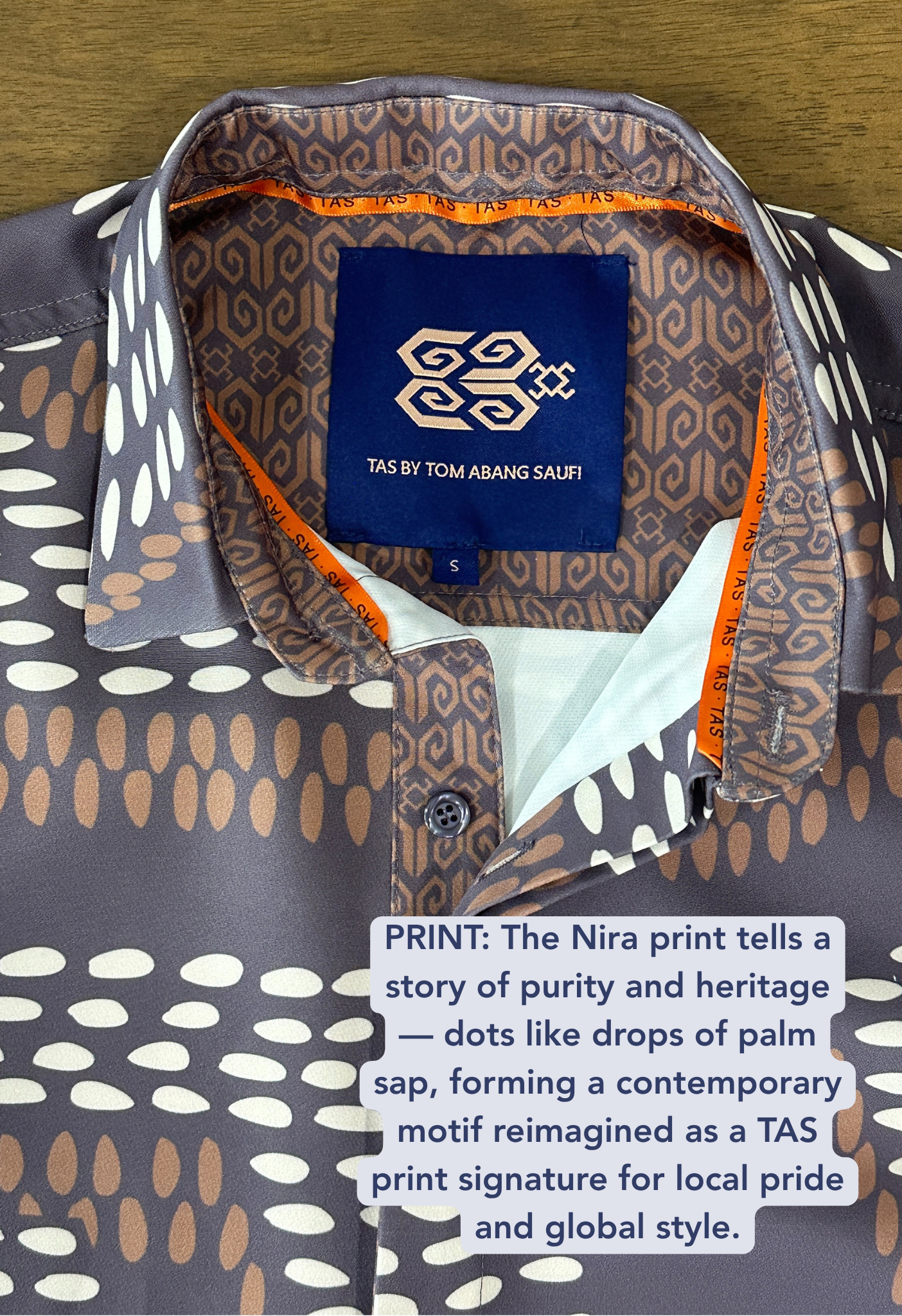 Signature Nira Print shirt by Tom Abang Saufi. Rooted in tradition, crafted for comfort, styled for today.