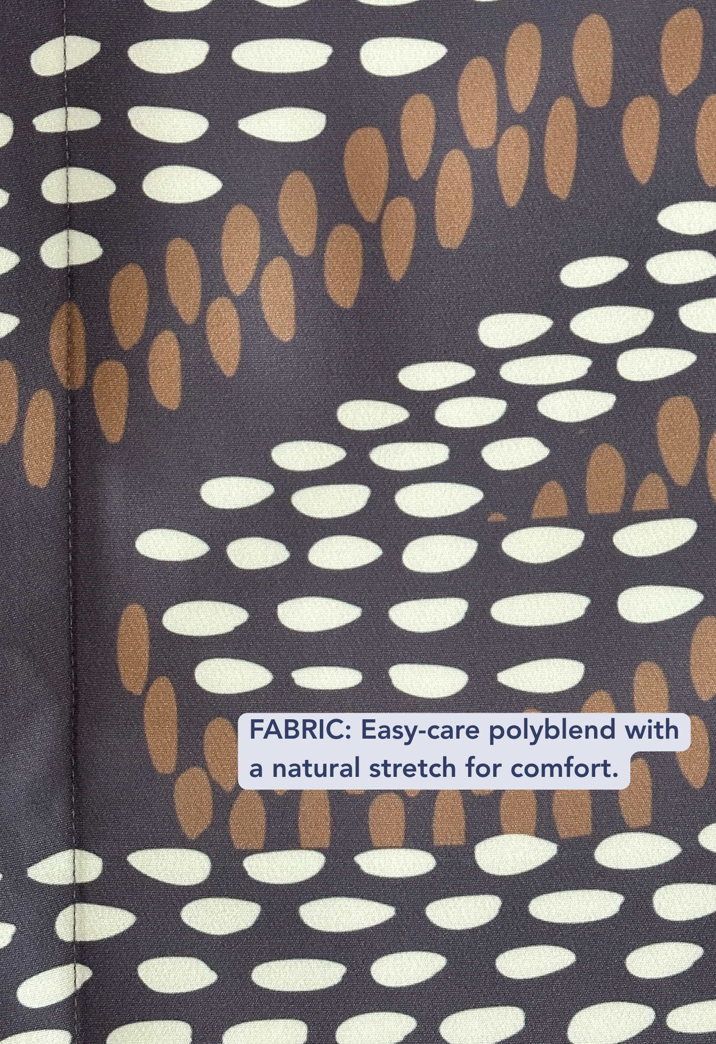 Crafted in an easy-care polyblend with natural stretch for everyday wearability.