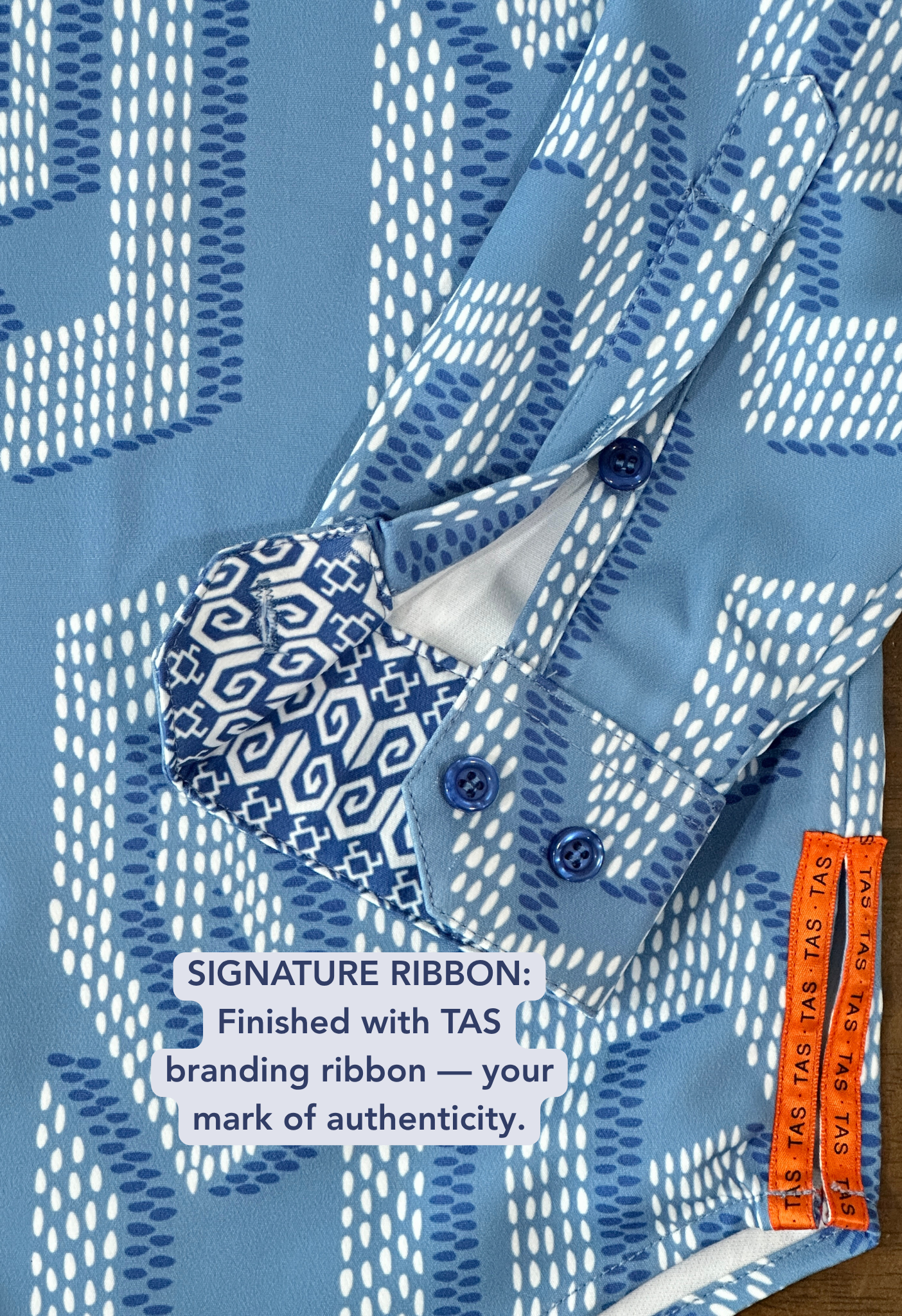 Signature Nira Print shirt by Tom Abang Saufi. Rooted in tradition, crafted for comfort, styled for today.