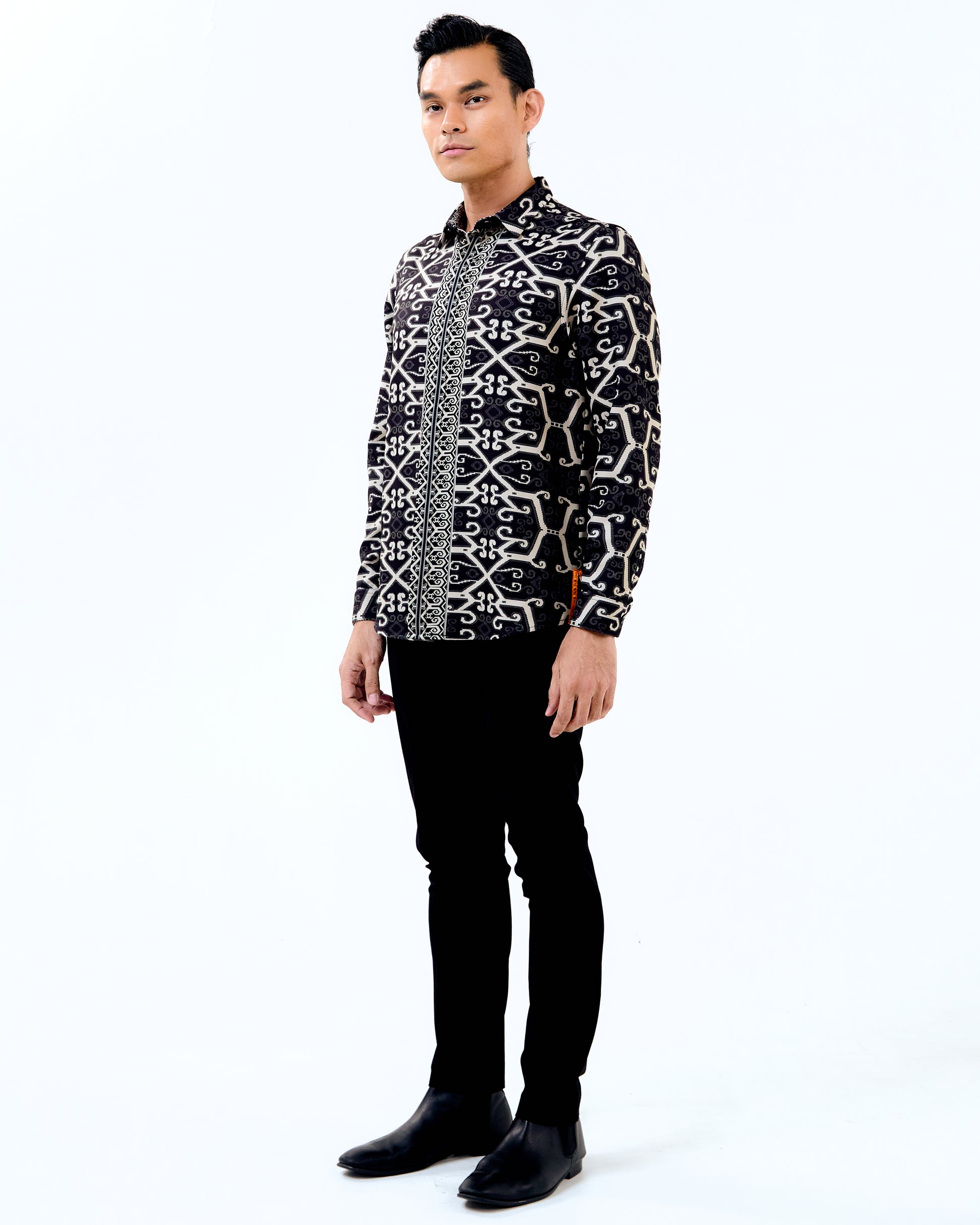 ∙ Printed collared shirt featuring the signature Tom Abang Saufi Mela Print.