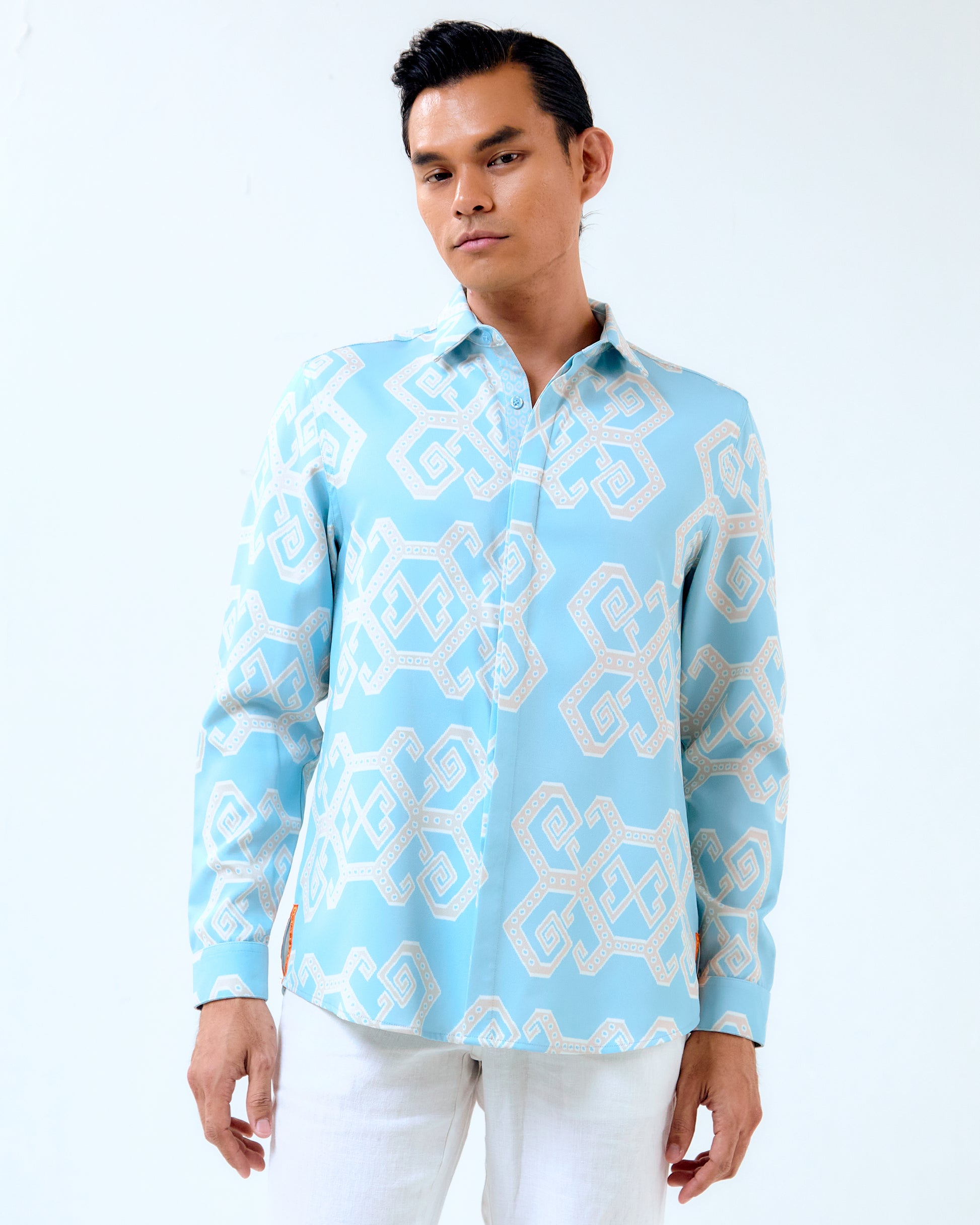 ∙ Printed collared shirt featuring the signature Tom Abang Saufi Mela Print.